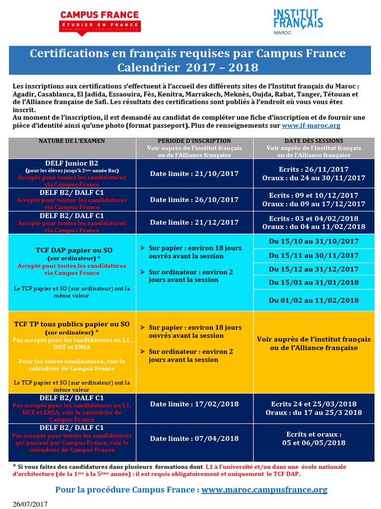 Campus France Maroc Calendrier Tcf Dap Tp Delf Dalf Procedure 2018 2019 Tawjihnet