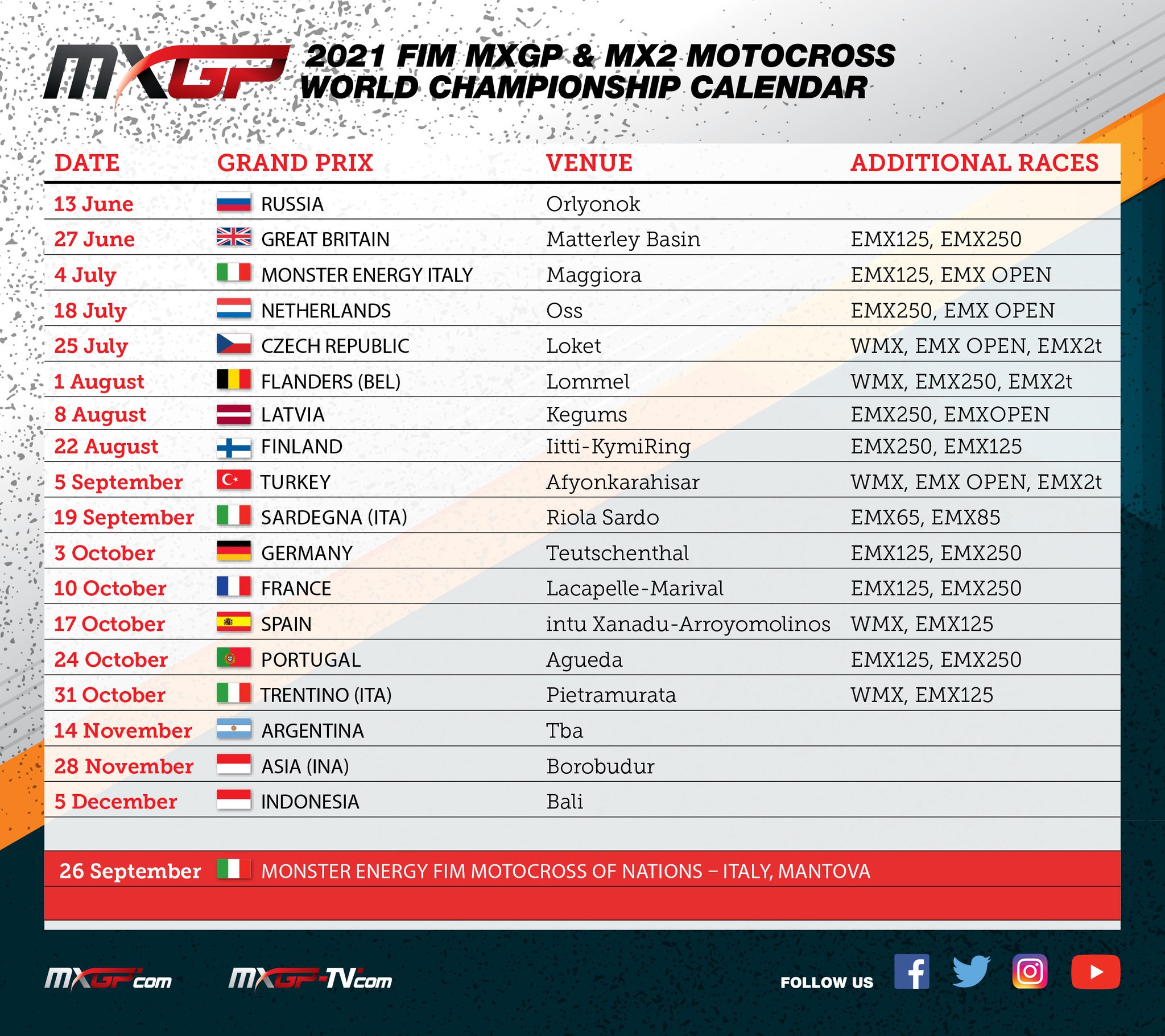 2021 Calendar Update Fim Motocross World Championship Mxgp